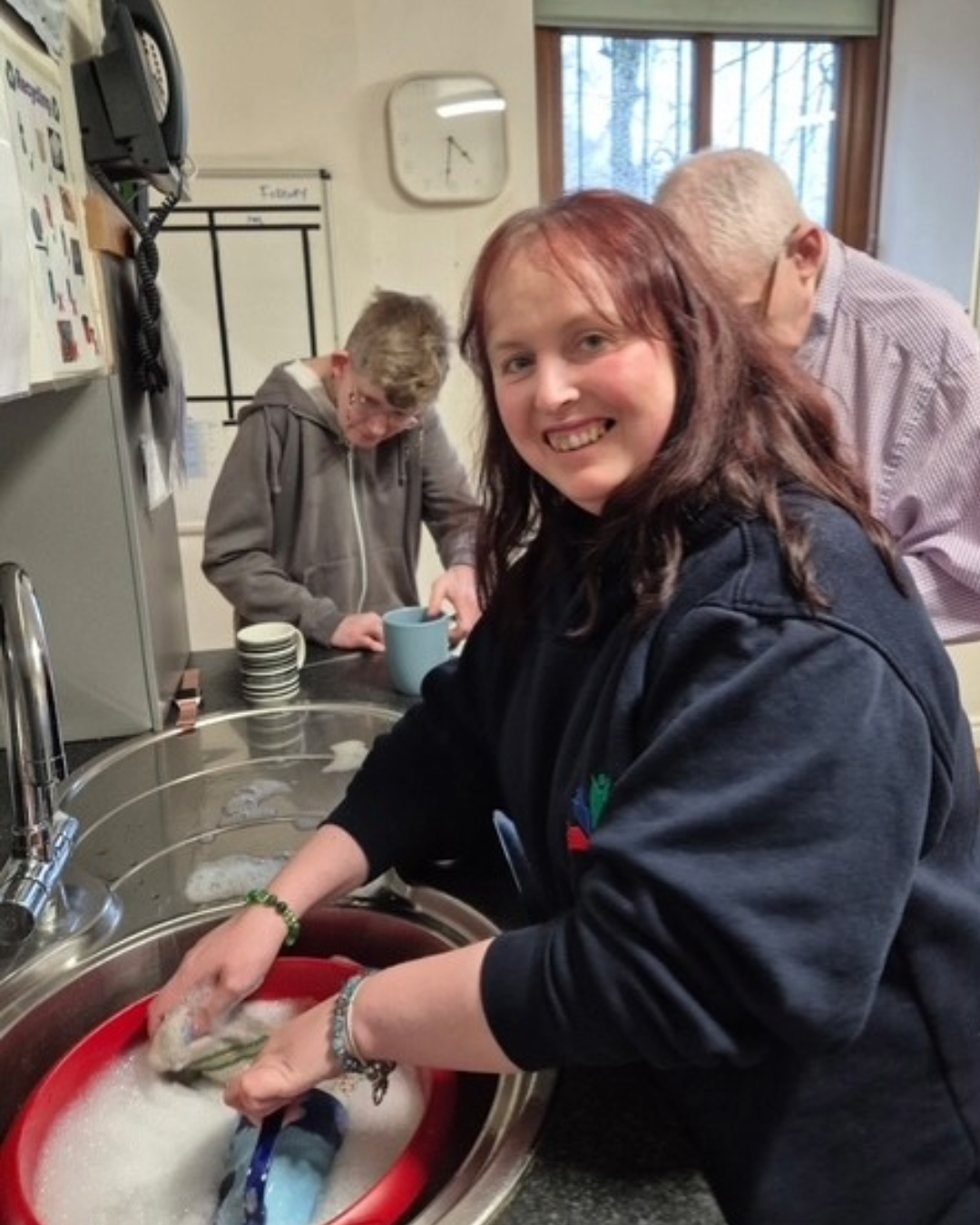 Kim lives in a shared house with four gentlemen who also receive supported living assistance. Kim affectionately refers to herself as the “mum of the house,” ensuring everything runs smoothly for her and her housemates.